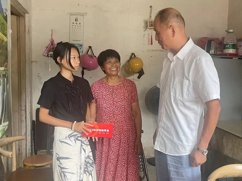 8月28上午步陽集團黨委書記程明松將助學金親手交到學子手中。