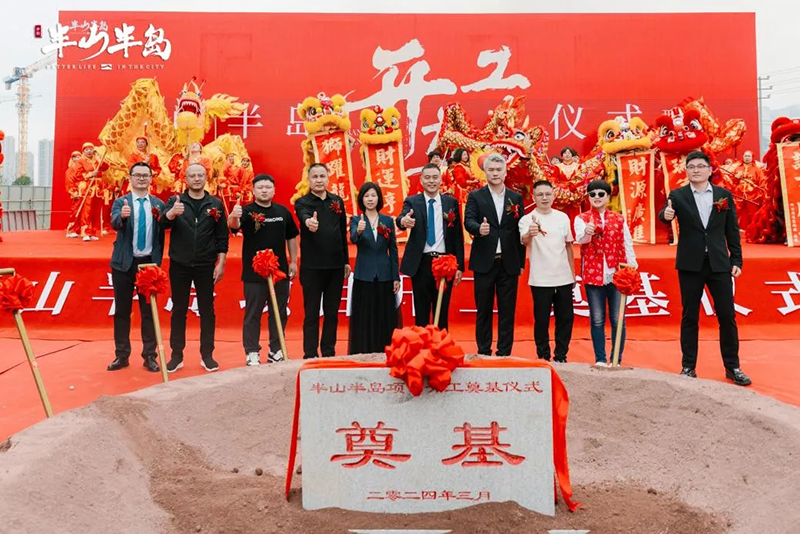 在振奮人心的致辭后,奠基儀式正式啟動,現場鼓樂齊奏、彩煙齊放、禮炮齊鳴,氣氛喜慶而熱烈。在眾人的矚目下,受邀而來的領導和嘉賓們共同為項目奠基培土,將象征堅實穩固、根基永恒的奠基石植入土壤,半山半島項目正式開工。現場鼓樂齊奏、彩煙繚繞、禮炮齊鳴,氣氛喜慶而熱烈,與來賓共同見證這一榮耀時刻。在開工禮炮的轟鳴聲中,典禮圓滿禮成。