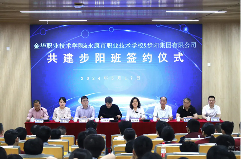 5月17日,步陽集團與金華職業技術學校、永康市職業技術學校三方簽約成立步陽班。簽約儀式在永康職業技術學校隆重舉行,儀式由永康職業技術學校黨委書記夏其明主持。
