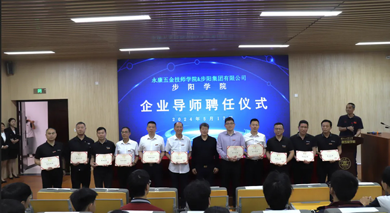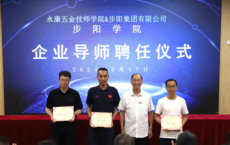為充分發揮校企雙方的優勢,步陽集團與永康五金技師學院實行校企“牽手”互聘,互聘步陽11名高管為學校的企業導師、學校的4名博士專家團隊為企業技術專家,極大地促進雙方在人才培養、技術研發、技能提升等方面的深度合作,進一步實現校企共建、攜手引領專業發展。