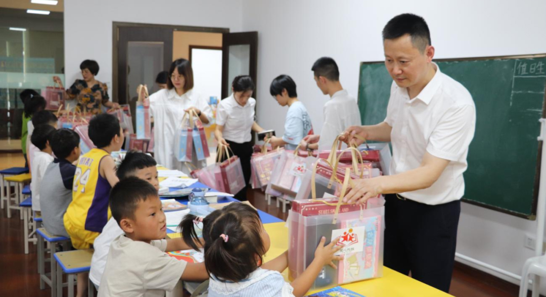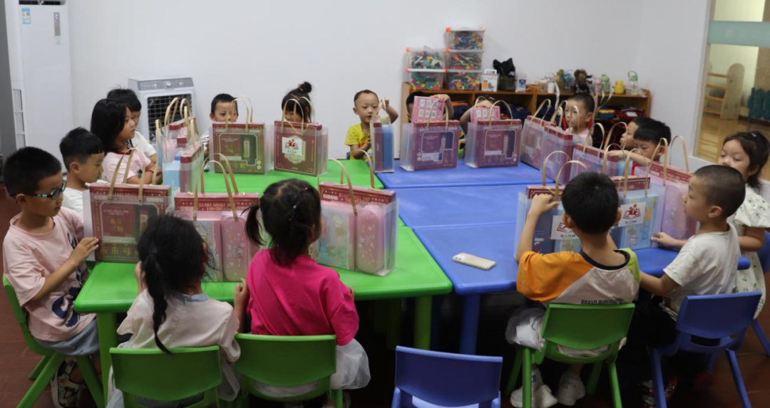 王穎奕主任親切地走到每一位孩子身邊,將那份承載著希望與夢想的定制文具包遞到他們手中。這些文具包不僅設計精美,更蘊含著對孩子們未來學習生活的美好祝愿。她溫柔地鼓勵道:“愿這些文具成為你們探索知識的鑰匙,在暑托班的每一天都能認真學習,快樂成長?!焙⒆觽兘舆^文具包,眼中閃爍著興奮與感激的光芒,仿佛已經看到了自己用筆尖描繪出的精彩未來。