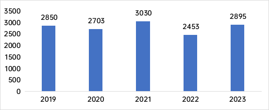 新建住宅推動了安全門需求。受房地產(chǎn)市場下滑影響,安全門需求和市場規(guī)模波動。2021年需求量為3030萬樘,2022年降至2453萬樘,市場規(guī)模為488億元,下降約15%。然而,政府刺激政策和市場調(diào)整帶動2023年需求回升至2895萬樘,市場規(guī)模增至558億元。消費者對家居安全和智能化的關(guān)注,以及技術(shù)進步,預(yù)計將推動安全門市場長期增長。