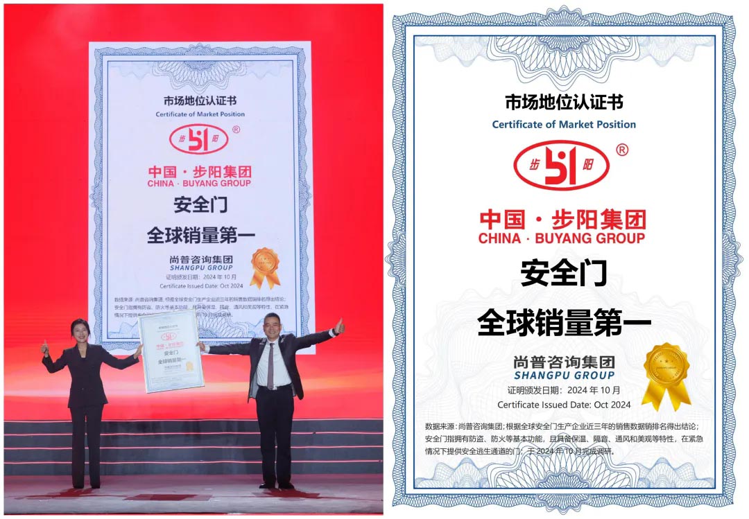 2024年,步陽安全門憑借卓越的產品品質和市場影響力,榮膺全球銷量第一的殊榮。這一成就不僅彰顯了步陽在全球安全門市場的卓越領導地位,更是對步陽產品品質與國際市場認可的最佳證明。