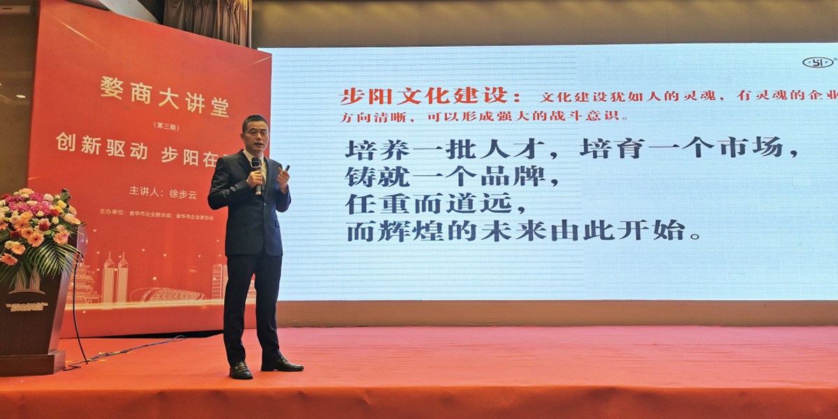 本次婺商大講堂旨在加強企業(yè)家交流學(xué)習(xí),拓寬企業(yè)家視角,推動企業(yè)經(jīng)營隊伍建設(shè)。中國步陽集團(tuán)董事長徐步云,作為金華企業(yè)家協(xié)會執(zhí)行會長出席會議,并向與會的各企聯(lián)、企協(xié)、各會員單位、各聯(lián)盟會員分享了中國步陽集團(tuán)29年來的發(fā)展歷程和在推進(jìn)數(shù)字化、智能化改造的經(jīng)驗做法。