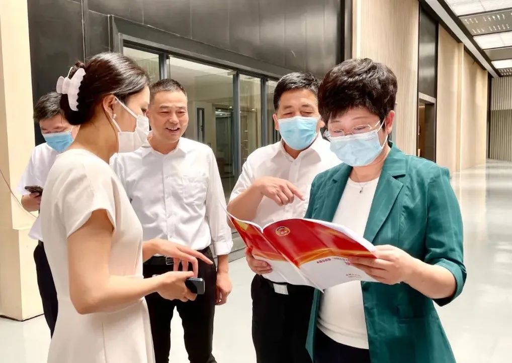 6月8日,金華市政協副主席蔡艷等領導一行來步陽集團調研指導工作,永康市政協主席胡積合,步陽集團董事長徐步云,金華市政協委員、步陽集團總經理徐璟珺等陪同參觀了步陽科技館、步陽大數據中心和步陽5G智能工廠。
