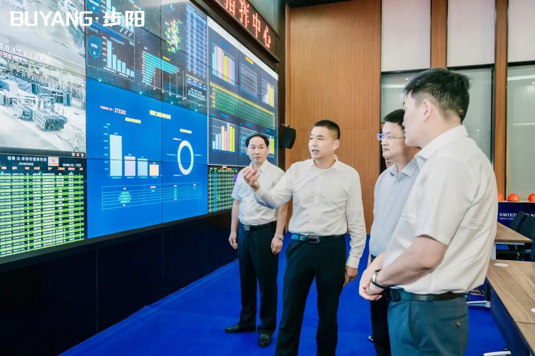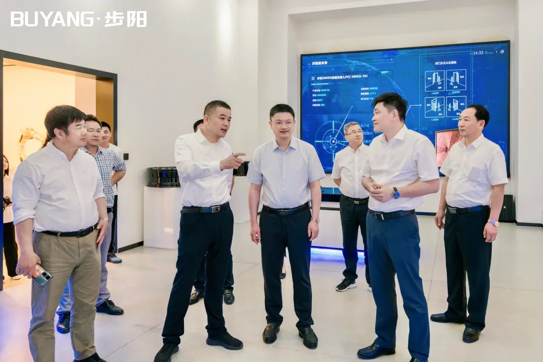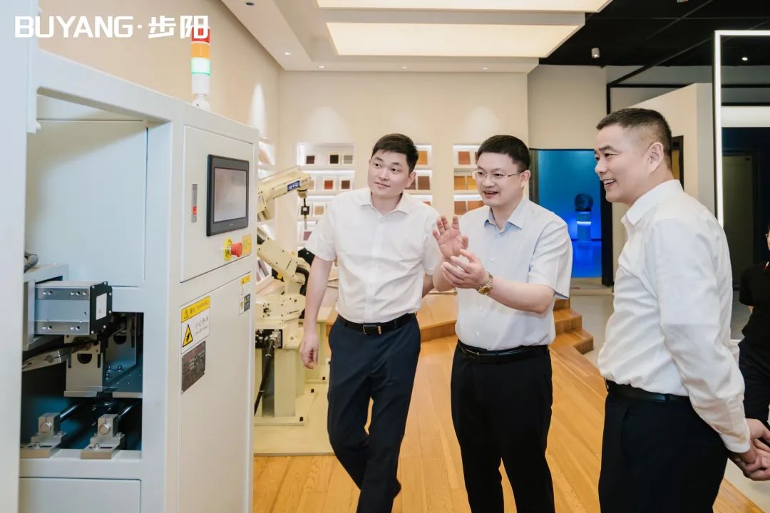 集團董事長徐步云陪同呂書記一行參觀了步陽科技館、黨建中心及門成品展廳/汽輪/大數據中心,步陽工匠室、5G智能流水線,并聽取總經辦副總經理朱寧介紹公司科技創新轉型、生產自動化流水線等相關介紹解說。