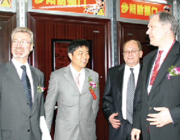 徐步云董事長向海伯特先生、愛樂芬?施耐德、亞歷山大?斯彼得羅夫介紹步陽集團